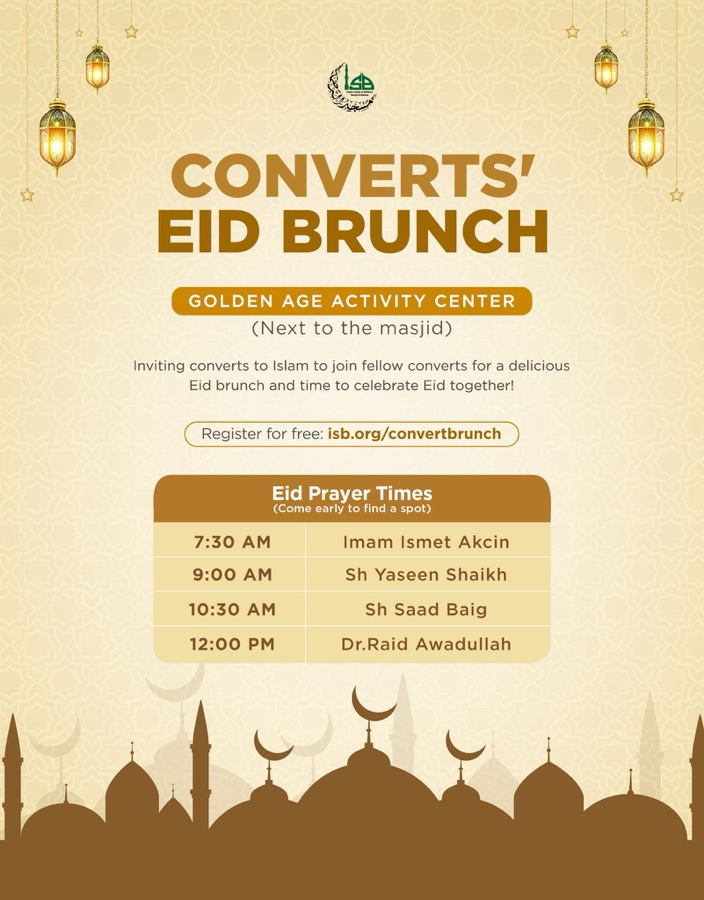 Register for the Converts Eid Brunch on Eid day. The brunch will be held at the Activity Center and is exclusively for those brothers and sisters who are converts/reverts.