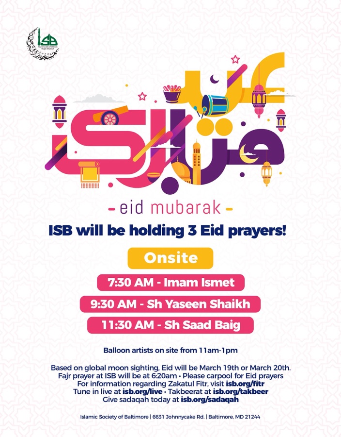 ISB has planned THREE (3) prayers for Eid – see timings below!
