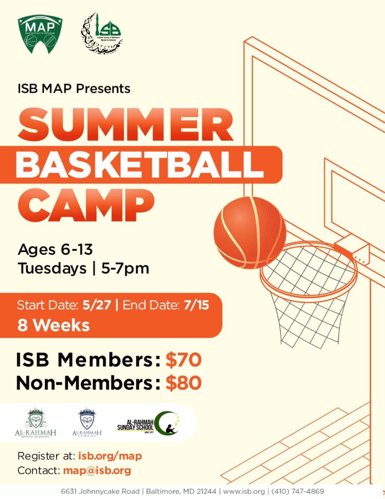 The Muslim Athletic Program (MAP) has been established at the Islamic Society of Baltimore (ISB) to promote active/ healthy lifestyles and teamwork/ relationships for our community. We accomplish these goals by offering various sports camps and tournaments to the community, regardless of race, gender, and religion.