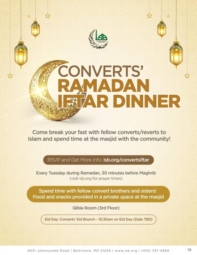 With a wide variety of activities and events the entire month, this is sure to be a Ramadan to remember! Join us for Iftaar, Taraweeh, various Qiyam nights, special events for sisters and for brothers, convert-only gatherings, an open house where we invite our non-Muslim neighbors to visit the masjid, and so much more!